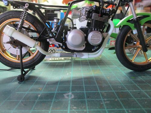 集合管の接着剤が硬化しました モチベ維持のため集合管を付けた状態で外装部品を付けてみた。 あと、もう少し、という感じまで来ました。 集合管の接合部分の表面が凸凹だったので溶きパテを盛って修正します。 溶きパテの硬化を待ちます。 ランキング参加中…